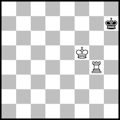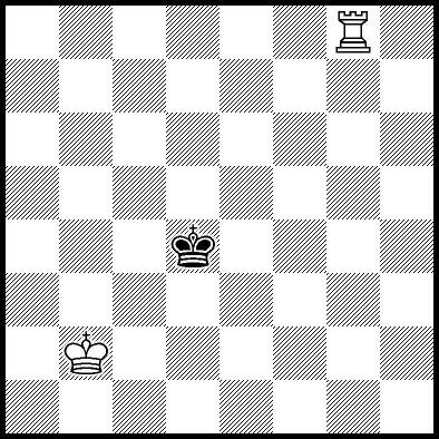 | Mate in 12 with Kc4, Kd3, Kd4, Re1, Re2 and Re7. Worse are Kb3, Kb4, Kc2 and Kd2 with mate in 13, Kb2, Ra8, Rb8, Rc8, Rd8, Re6, Rf8+, Rg8 and Rh8 with mate in 14, and Re3, Re4+ and Re5 which throw away the win. |